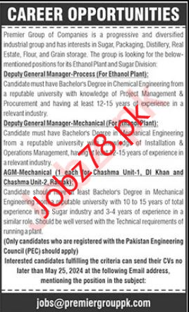 Candidates if you are seeking Premier Group of Companies Jobs In DI Khan May 2024 if yes. then you should try to complete this Premier Group of Companies job because here you can easily apply for these vacancies Deputy General Manager-Process (For Ethanol Plant) AGM-Mechanical (1 each for Chashma Unit-1, DI Khan and Chashma Unit-2, Ramak) Deputy General Manager-Mechanical (For Ethanol Plant).