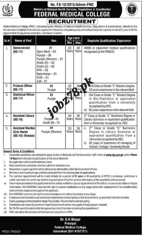 Ministry of National Health Services, Regulations & Coordination FEDERAL MEDICAL COLLEGERECRUITMENTFederal Medical College (FMC)